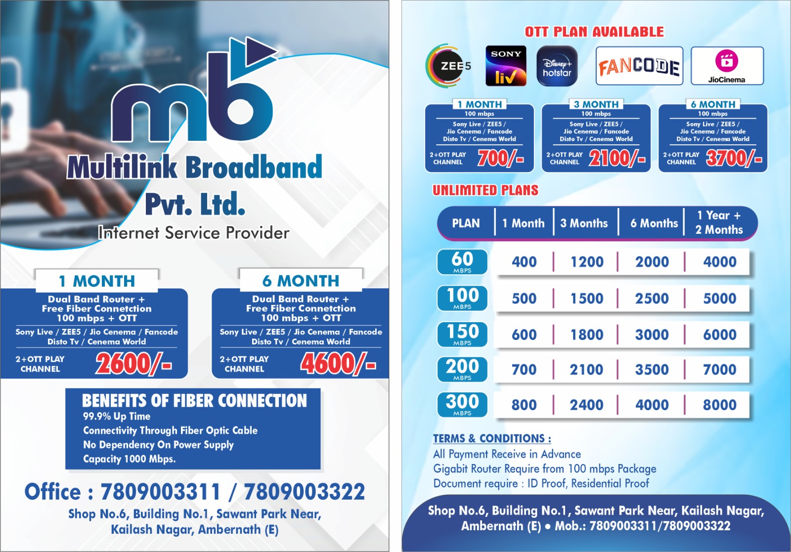 Experience the super fast fiber to the home internet from Multilink Broadband in Mumbai and Navi Mumbai